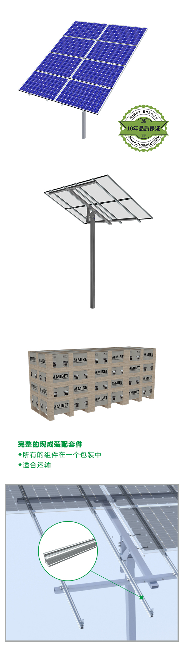 MRac 地面單立柱光伏支架 是一款專門針對大型商業及公共事業電站研發的解決方案,適用于各種小山丘及不平整區域項目,該產品設計靈活,可支撐6塊板、8塊板及10塊板,全部配件采用熱浸鍍鋅鋼和鋁合金,使用壽命更長,結構上的優化設計,有效的提高了安裝時效,大大降低了工程安裝成本。